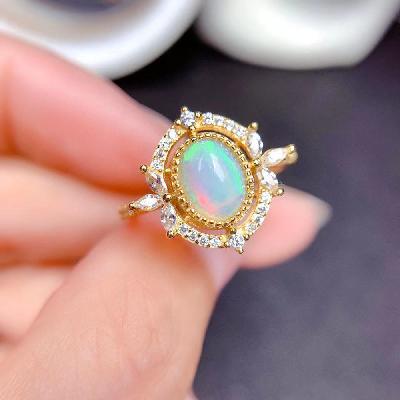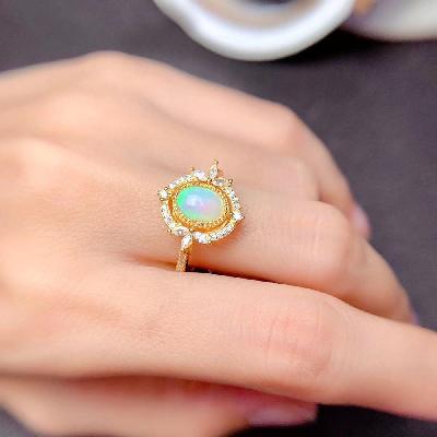 Natural Opal Vintage Sterling Silver Open Ring – Timeless Women’s Engagement Ring