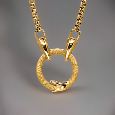 Ideal for those who value individuality and modern luxury, the Ouroboros Pendant with 3mm 20″ Round Box Chain Necklace brings personality to your style and elevates your jewelry collection with effortless confidence.