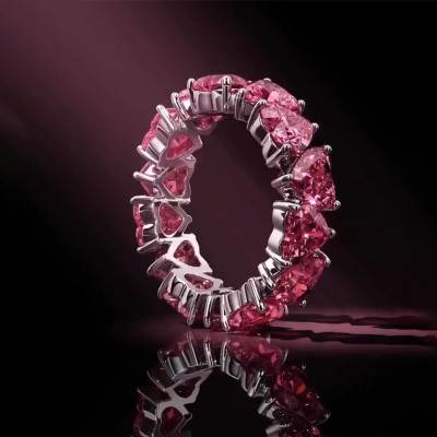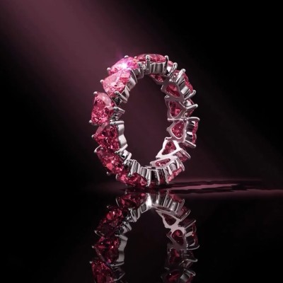 Pink Heart Cut Eternity Band – Women’s Wedding Band of Timeless Beauty