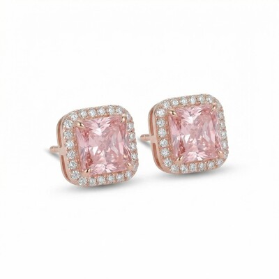 Pink Radiant Cut Halo S925 Silver Earrings
