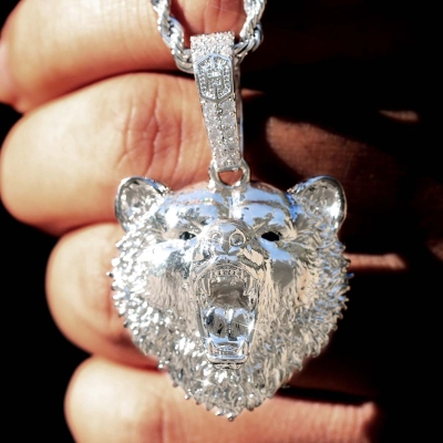 The Roaring Bear Pendant in White Gold features crystal intensity that helps transform simple outfits into statements. Its design focuses on visual depth, clean detailing, and a finish that feels confident rather than flashy.