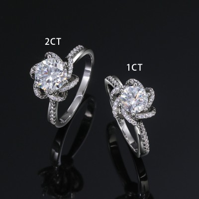 Round Cut Flower Moissanite Ring in S925 Sterling Silver