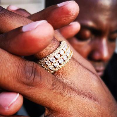 Premium street-style ring inspired by round cut halo eternity band in gold, designed for bold everyday wear.