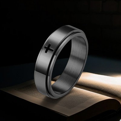 This ring is crafted for those who appreciate standout jewelry with a modern street-luxury vibe. Inspired by spinner relieving stress stainless steel cross band in black gold, it delivers shine, confidence, and comfort in one powerful design.