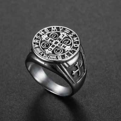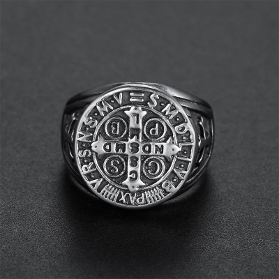 ST. Benedict Stainless Steel Cross Ring