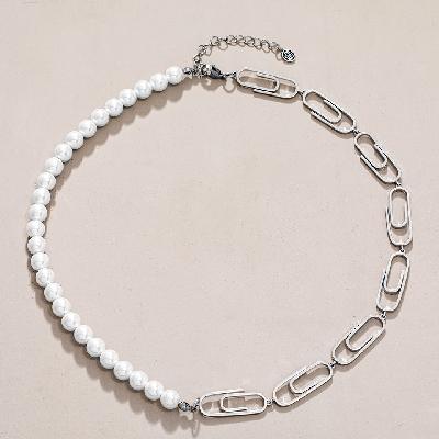 Stainless Steel Paperclip Pearl Necklace