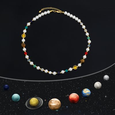 Universe Solar System Pearl & Healing Stones Chain