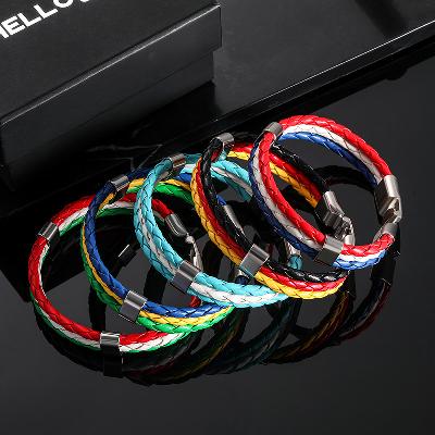 World Cup Soccer National Flag Color Leather Braided Bracelet